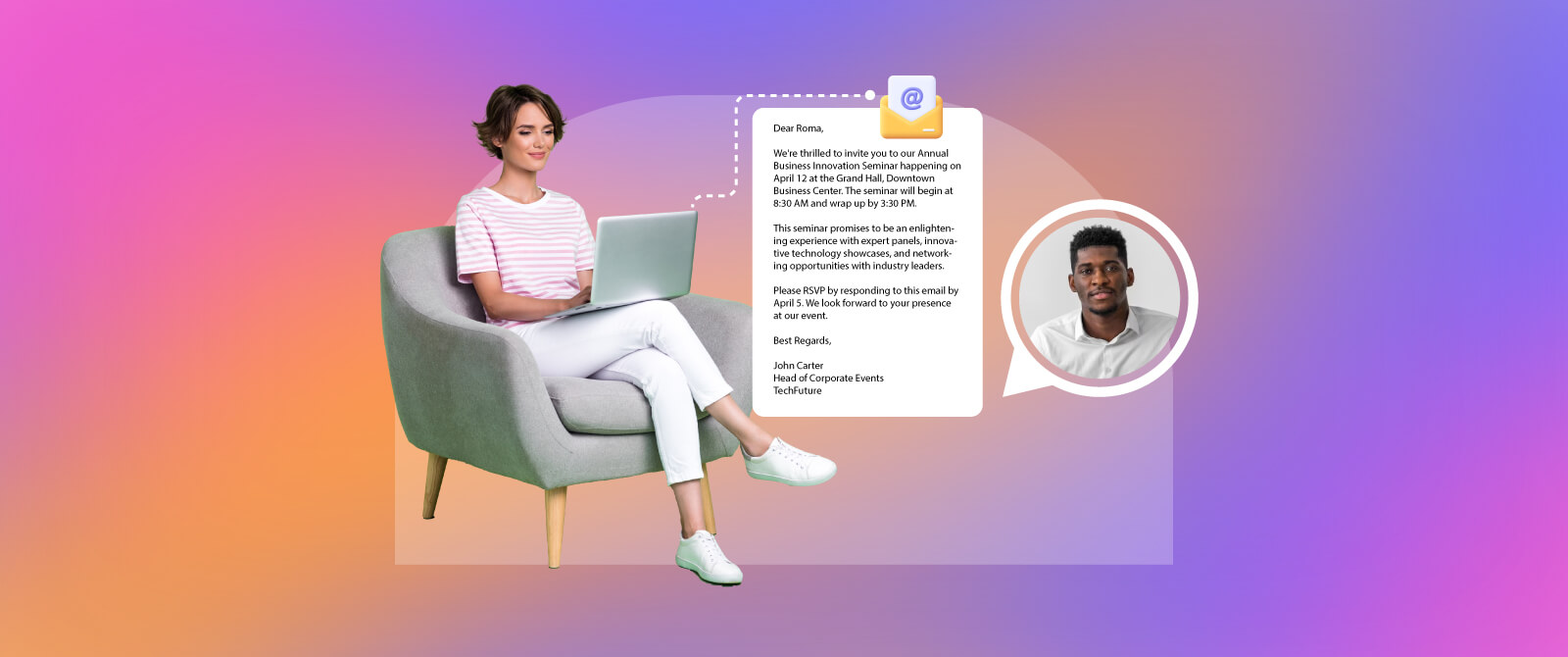 Personalize invitations by addressing recipients by name and tailoring messages to their interests. Highlight key event benefits, such as networking opportunities, exclusive sessions, or notable speakers, and use visually appealing design elements to catch their attention.