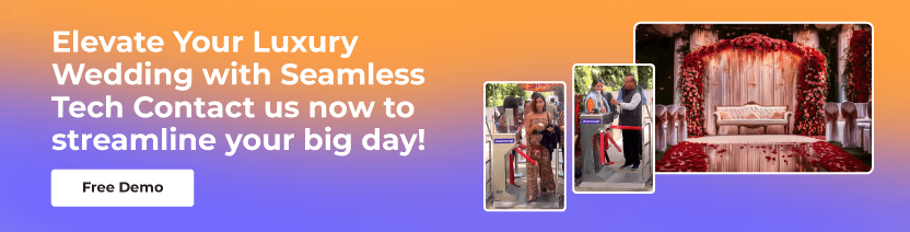 High-profile weddings, often attract high-profile guests; such an event demands high-level security measures. Wedding check-in solutions include facial recognition for check-in purposes. This speeds up the process while increasing safety and control. The usage of RFID wristbands helps track guest movements with absolute discretion through the flow of guests to those areas and ensures a no-eventful event.