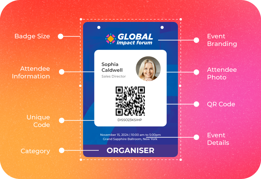 Create branded badges effortlessly with our custom design options, and formats. Tailor font sizes, colors, and styles to align with your event’s theme. Add QR codes or custom fields, and stand out with personalized images or sponsor logos. Choose from a variety of badge layouts and templates to meet your specific needs.
