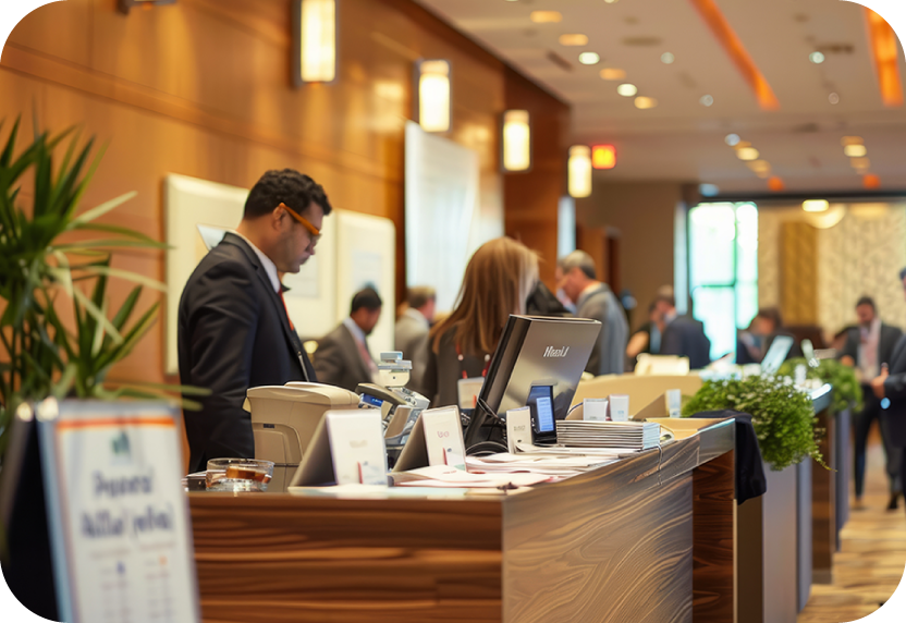Utilize our sophisticated tech stack, including check-in and badge printing, branded lanyards, iPad tablets, PCs for registration, tablet stands, and more, to deliver a seamless event experience. Our advanced technology ensures reliability and efficiency for your events.