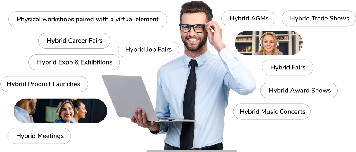 There is no barrier in hosting any type of hybrid event. Right from hybrid conferences, AGMs, town hall meetings, trade shows, fairs, award shows, and much more, it’s all possible.