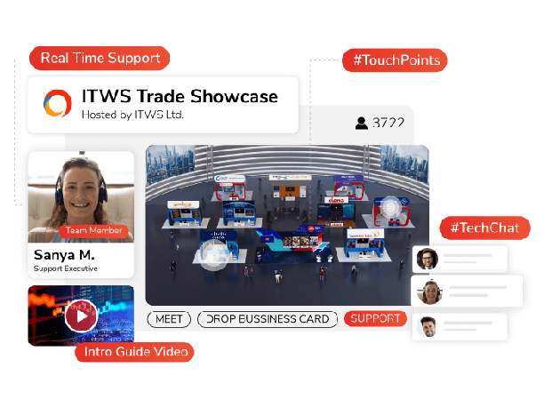 • Real-time & local time zone support ensures that you have our expert support that guarantees solutions to all your problems 24×7 so that you can host virtual exhibitions effortlessly.