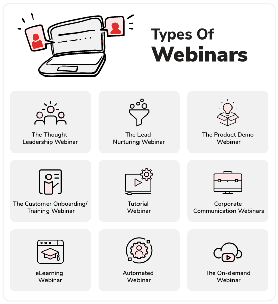 Webinars are generally classified as online events that take place over the internet. In a typical webinar, there are attendees and a speaker. Again, it’s up to the host and organisation how they make it look. Well, there can be many types of webinars online depending on the nature and topic. Here we are covering the most relevant types.