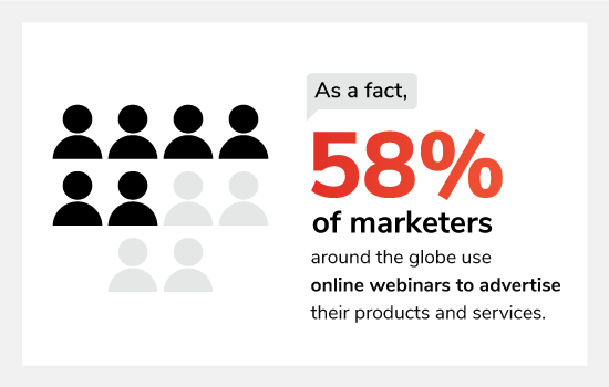 Statistics are important in every industry as this is the segment which tells the real potential of everything possible. As a fact, 58% of marketers around the globe use online webinars to advertise their products and services. Some of the key statistics of the webinar are: